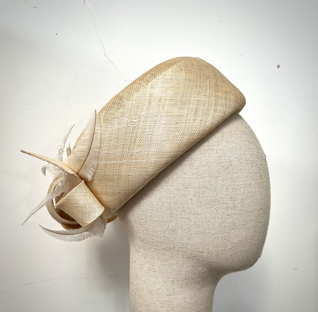 Natural pinok pok pillbox with feather trim